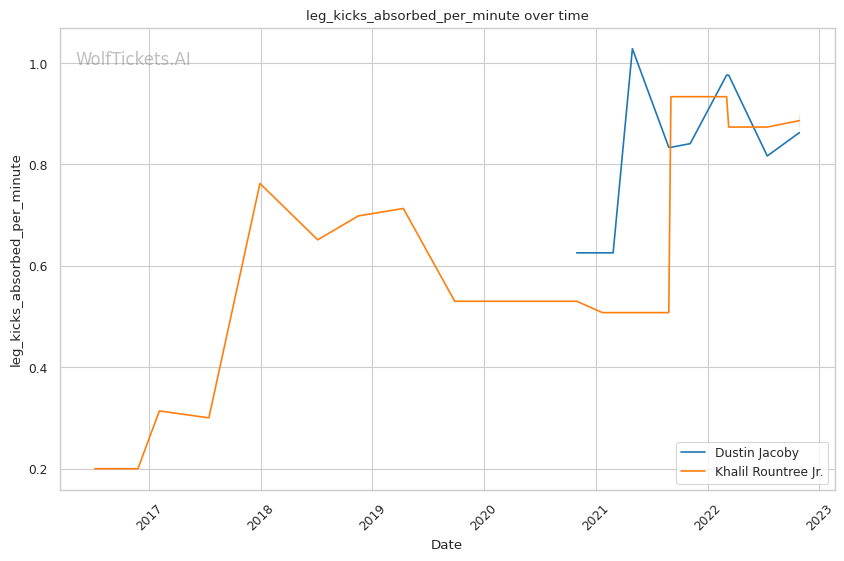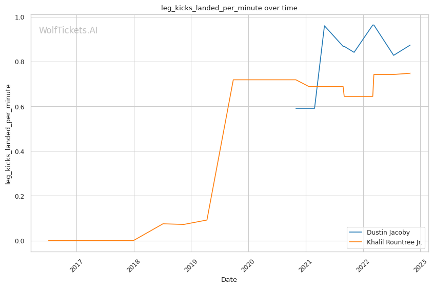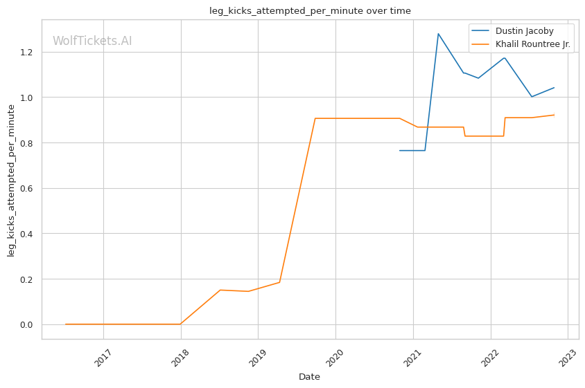 | Leg kicks Attempted per Minute | 1.042 | 0.933 | 0.696 | |