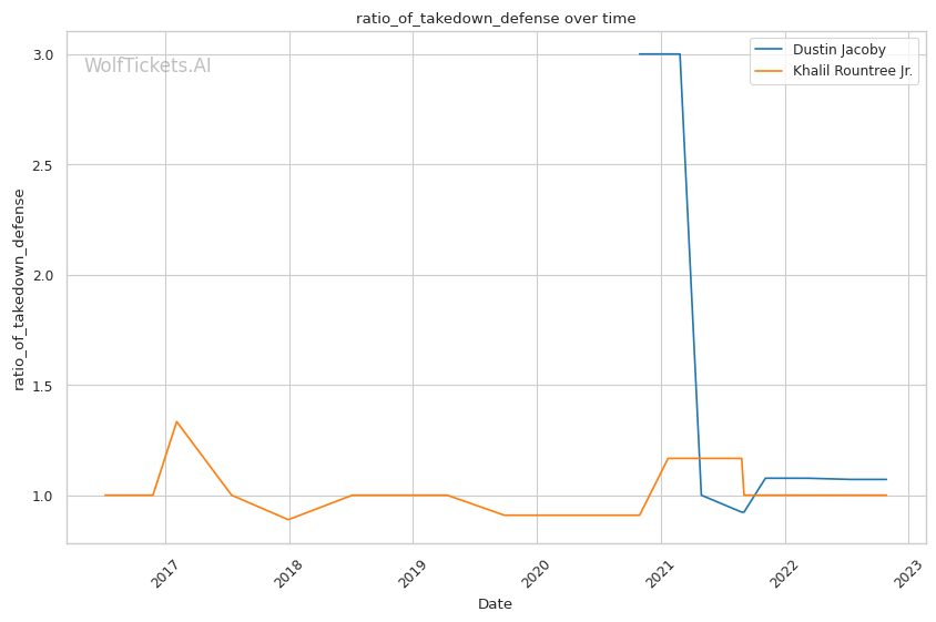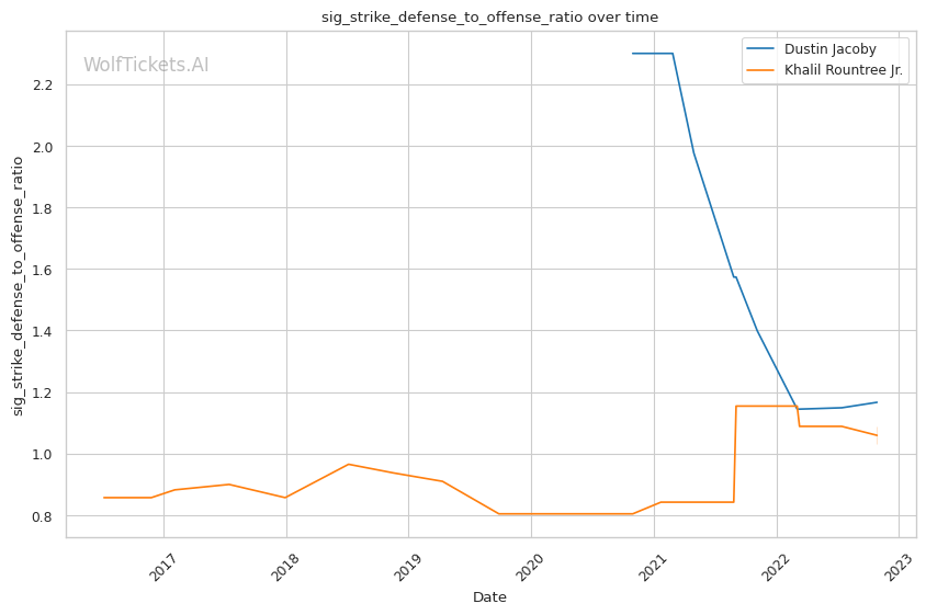 | Significant Striking Defense to Offense Ratio | 116.67% | 103.03% | 97.69% | |