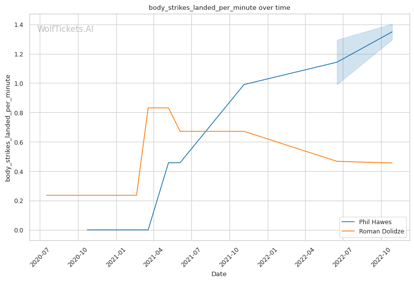 | Body Strikes Landed per Minute | 1.404 | 0.456 | 0.847 | |