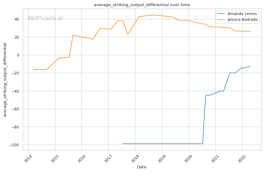 | Stat | Amanda Lemos | Jessica Andrade | Weight Class Average | |