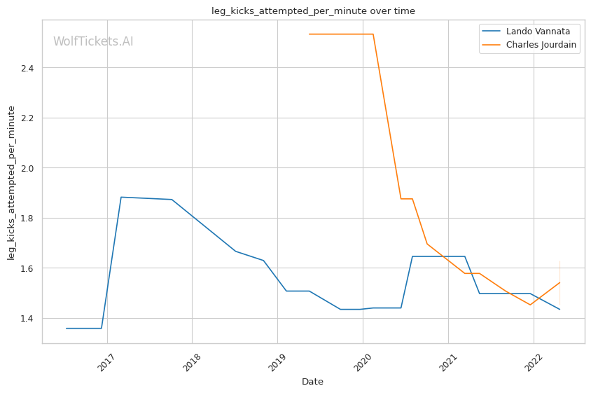 | Leg kicks Attempted per Minute | 1.433 | 1.629 | 0.687 | |