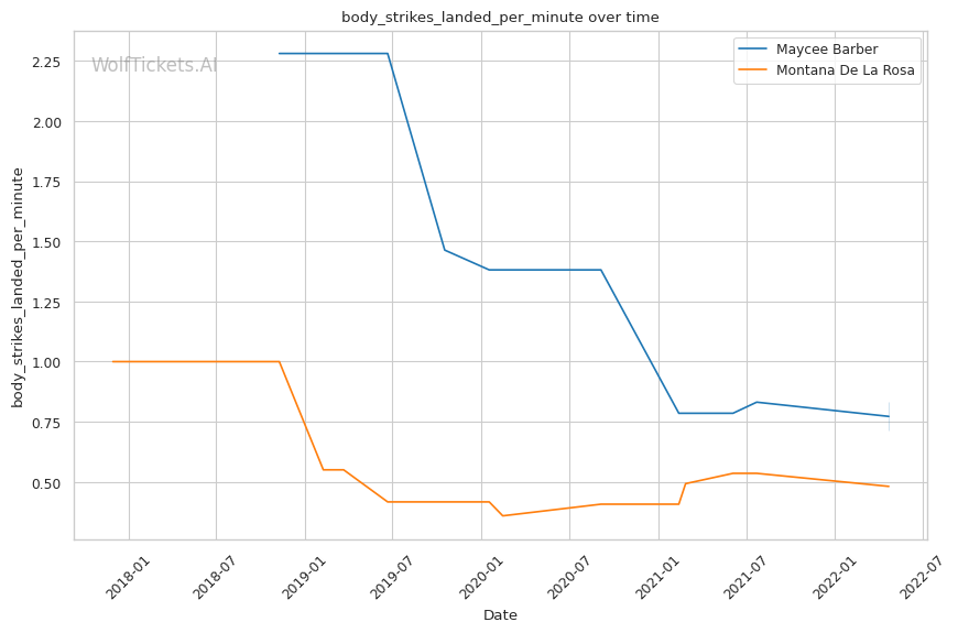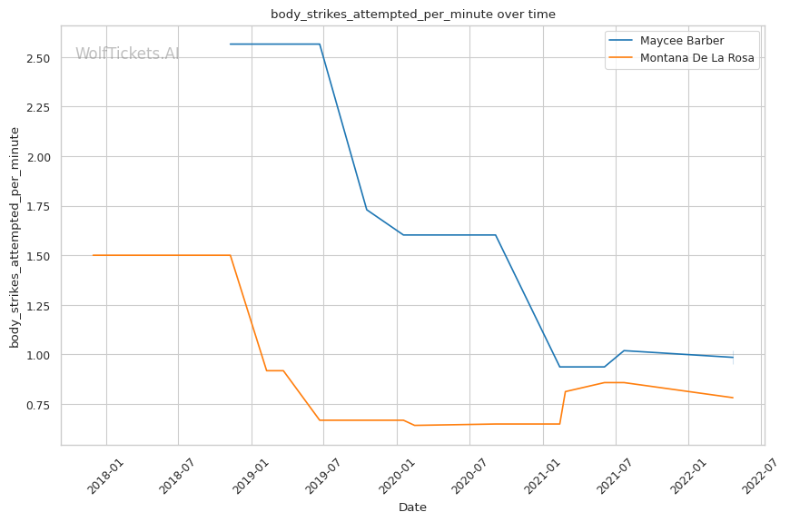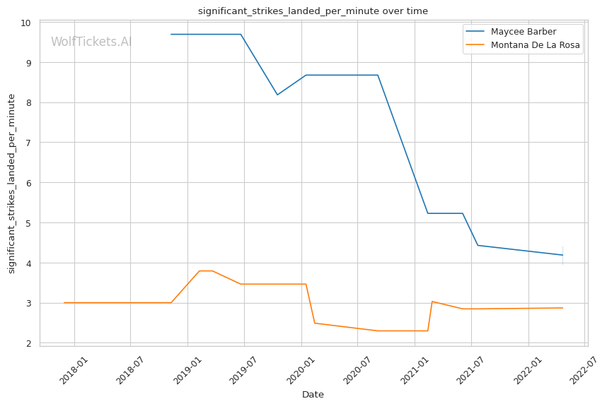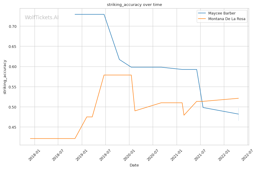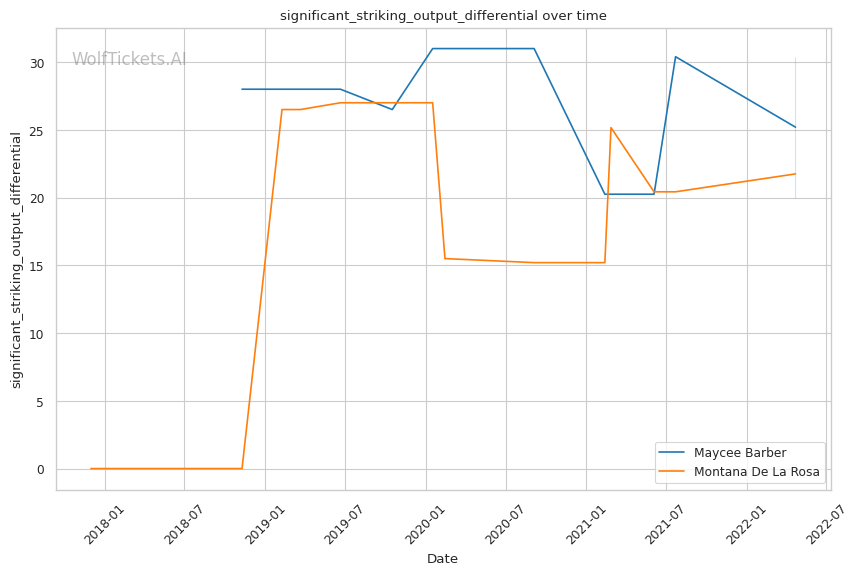 | Stat | Maycee Barber | Montana De La Rosa | Weight Class Average | |