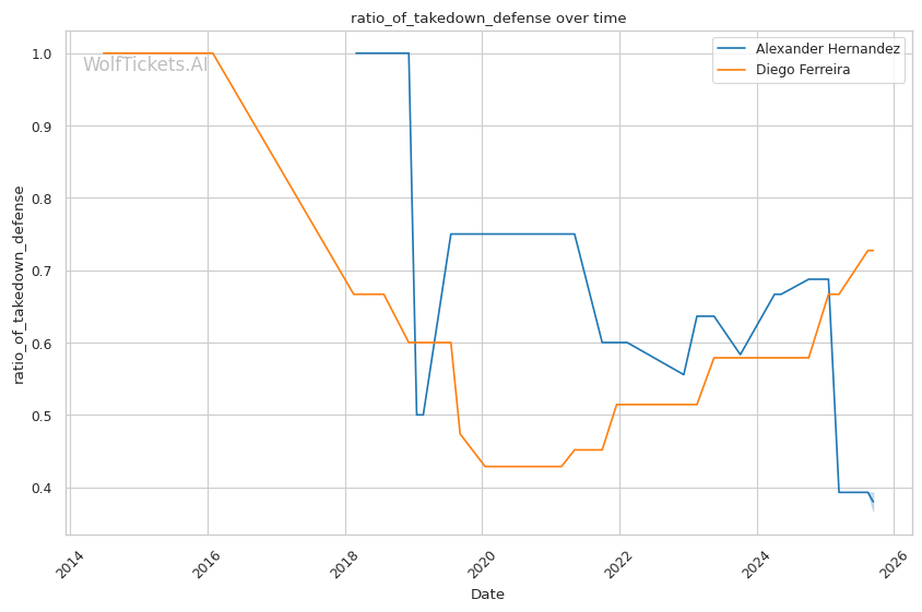 • Defensive vulnerabilities exist for both fighters - Hernandez's linear exits and Ferreira's takedown defense