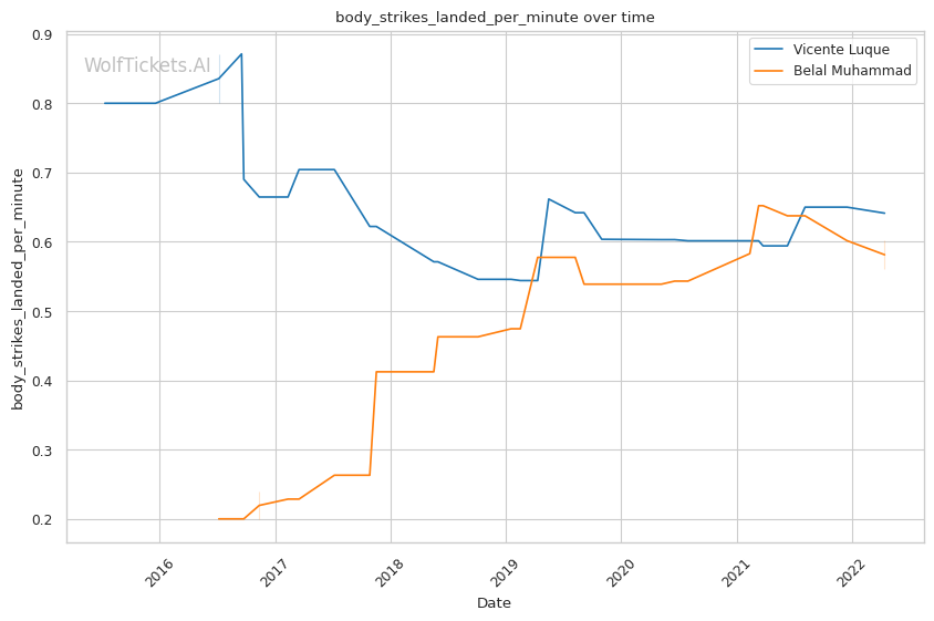 | Body Strikes Landed per Minute | 0.641 | 0.561 | 0.805 | |