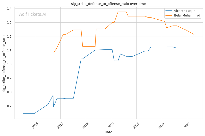 | Significant Striking Defense to Offense Ratio | 111.48% | 117.87% | 119.58% | |