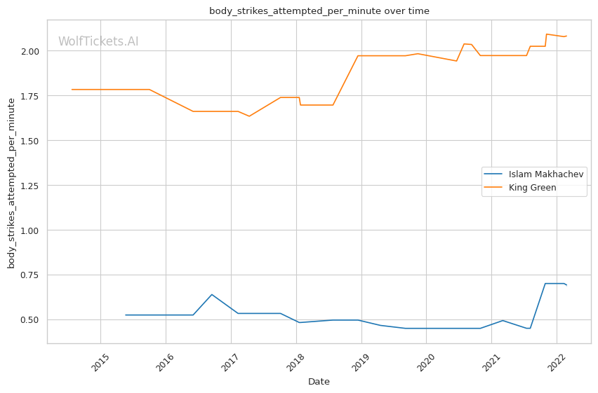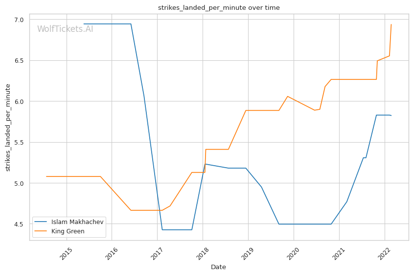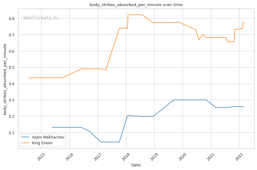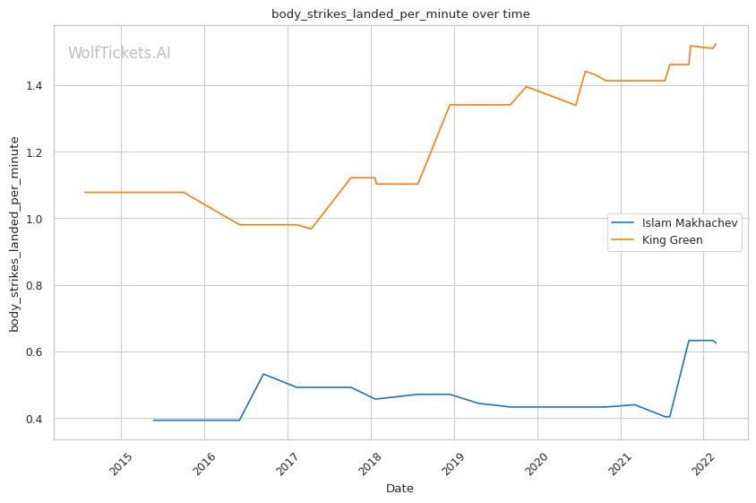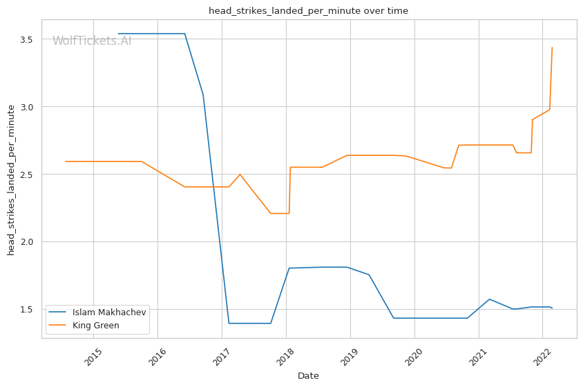 | Stat | Islam Makhachev | King Green | Weight Class Average | |
