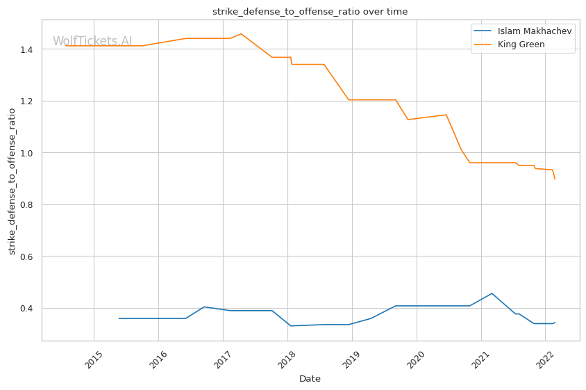 | Significant Striking Defense to Offense Ratio | 84.32% | 102.07% | 110.40% | |