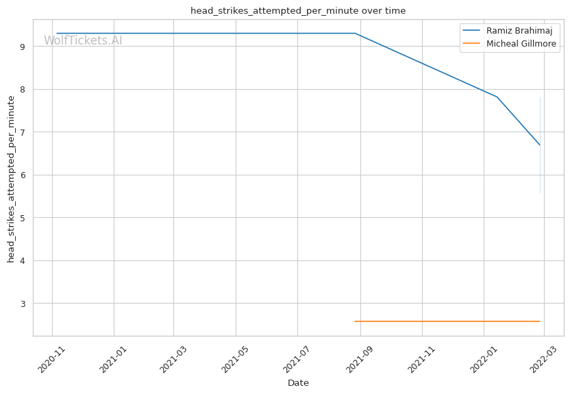 | Head Strikes Attempted per Minute | 5.574 | 2.576 | 7.518 | |