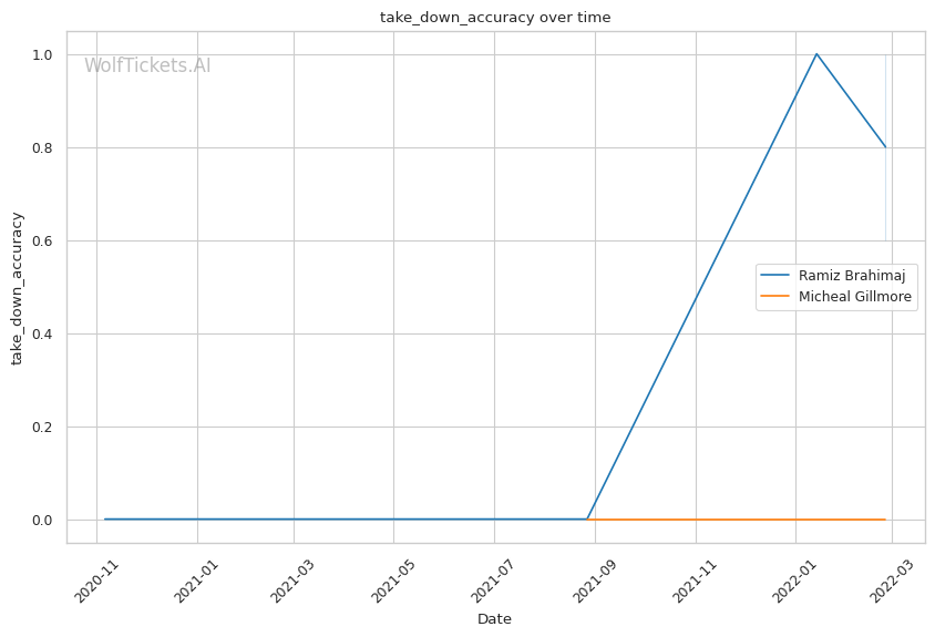 | Takedown Defense | 71.43% | 80.00% | 67.57% | |