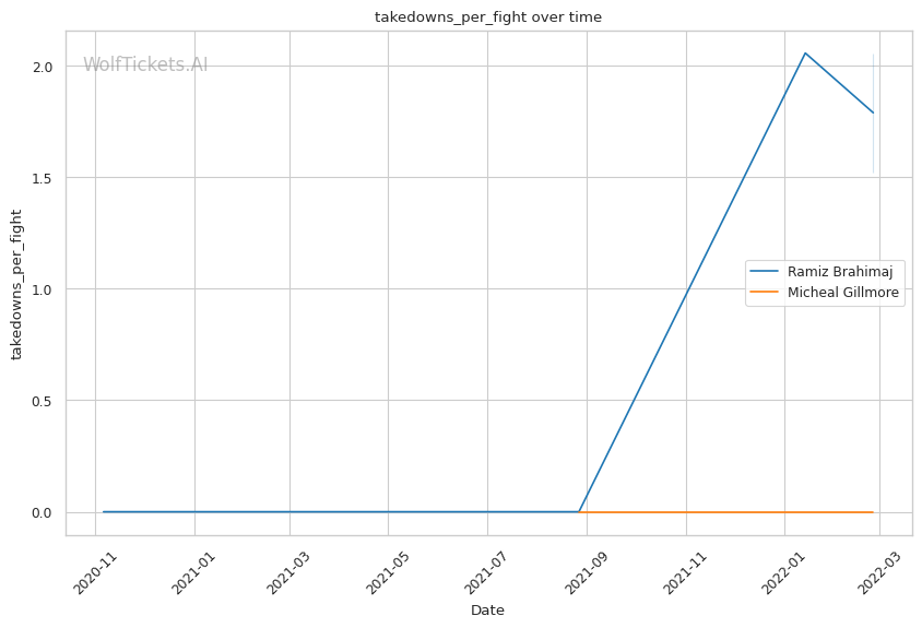 | Stat | Ramiz Brahimaj | Micheal Gillmore | Weight Class Average | |