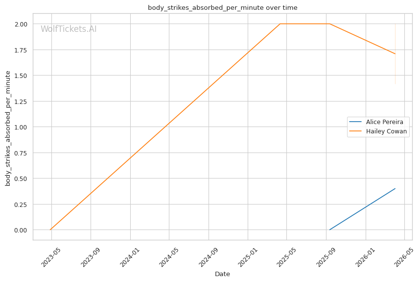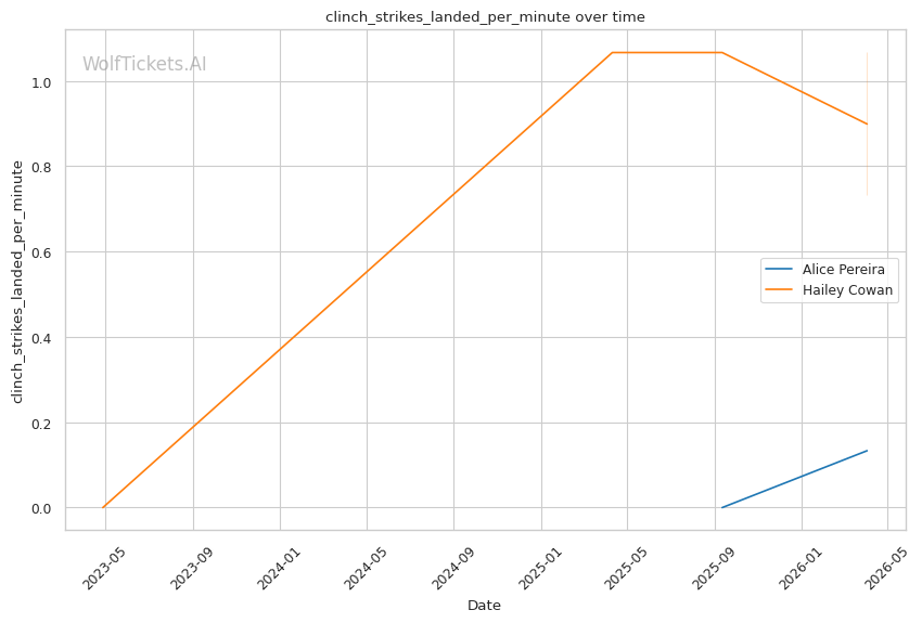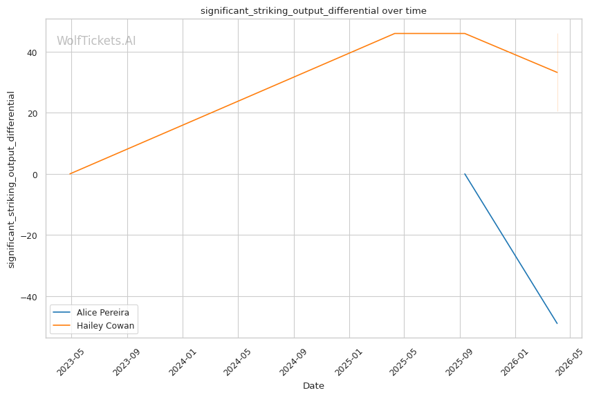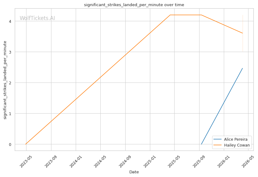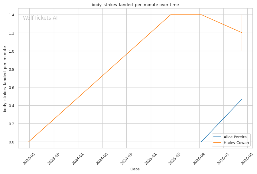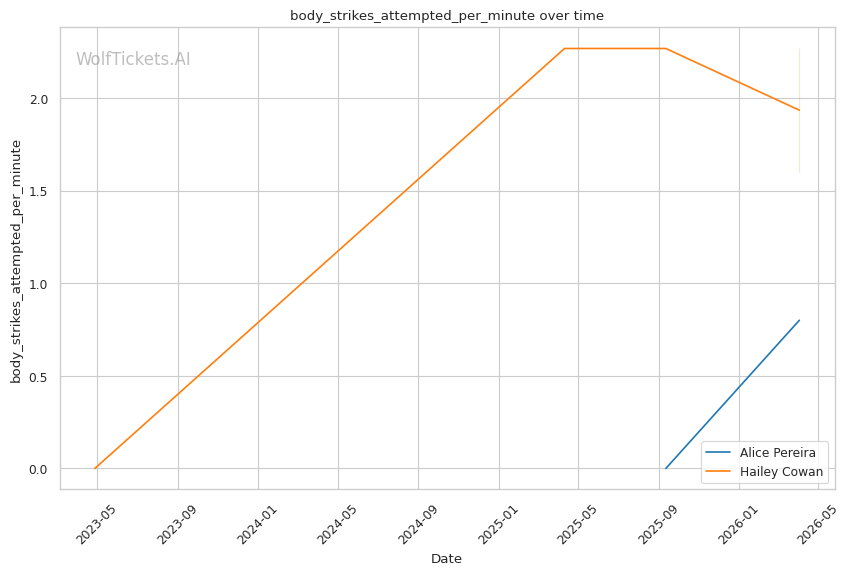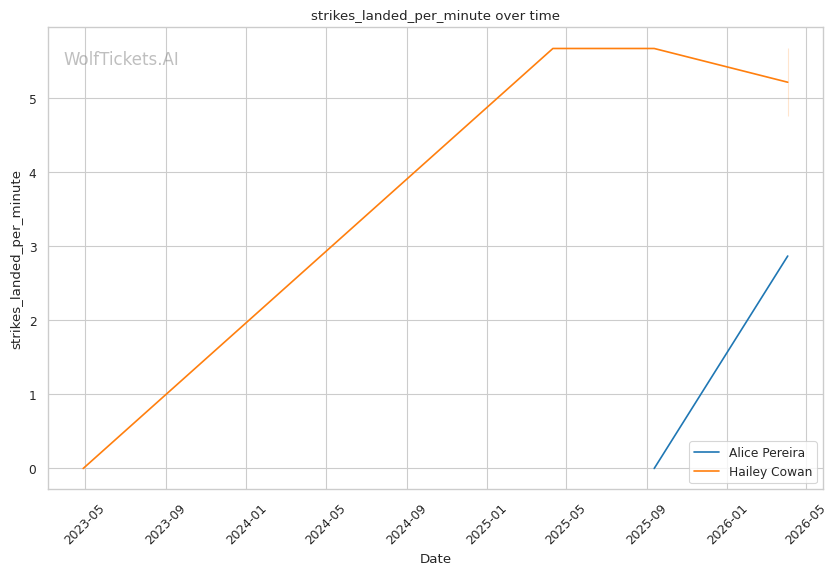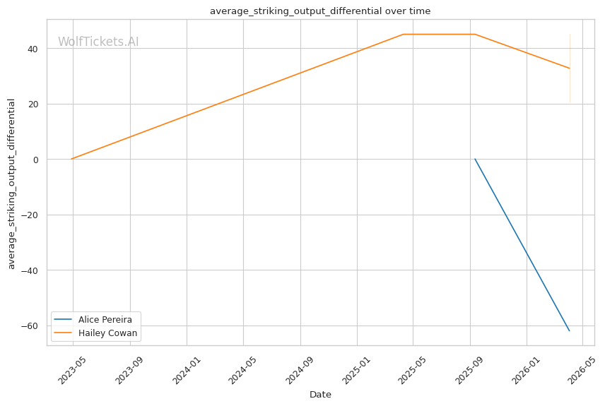 | Stat | Alice Pereira | Hailey Cowan | Weight Class Average | |