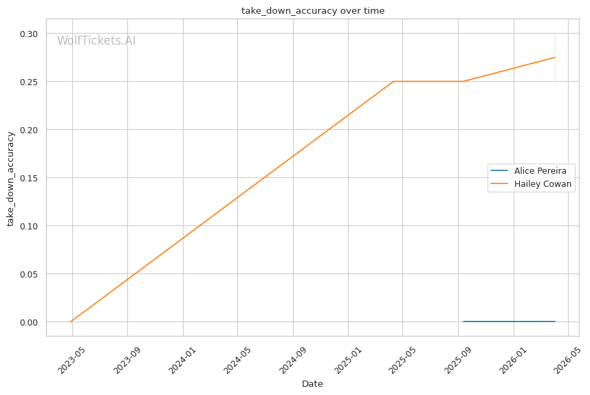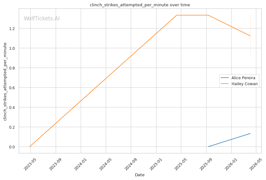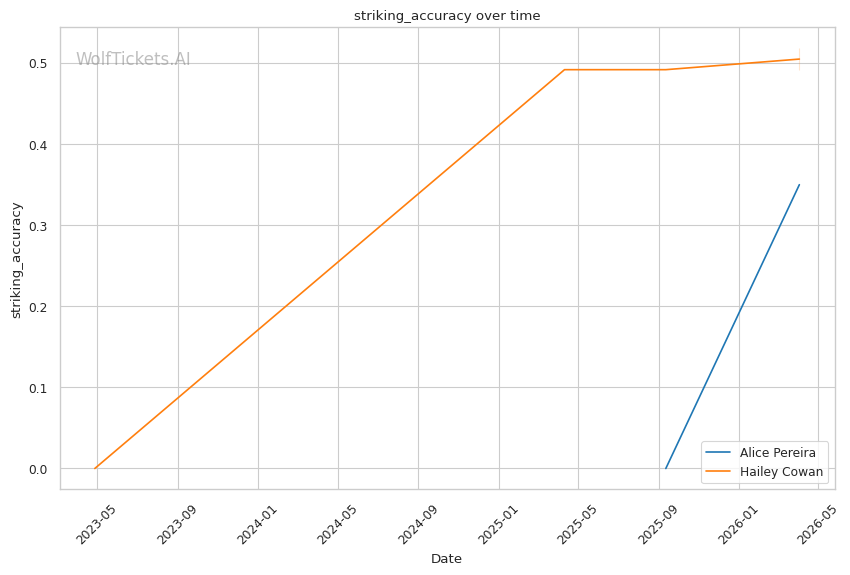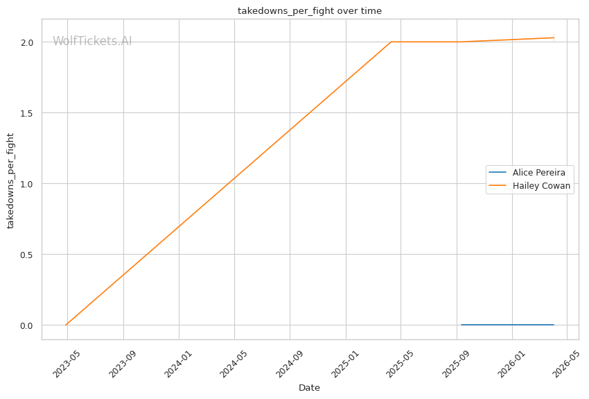 Alice Pereira should handle Hailey Cowan here. Cowan is on a two-fight skid with declining numbers across the board. Her striking defense is a liability, and her wrestling hasn't been effective enough to compensate. Pereira's patient, defensive approach should frustrate Cowan's attempts to close distance and grind. The model correctly picked against Cowan last time, and there's no reason to expect a different outcome here. WolfTicketsAI has Pereira winning, and the data supports that call.
