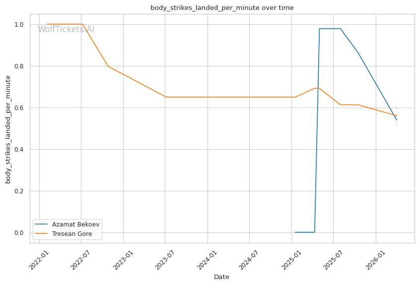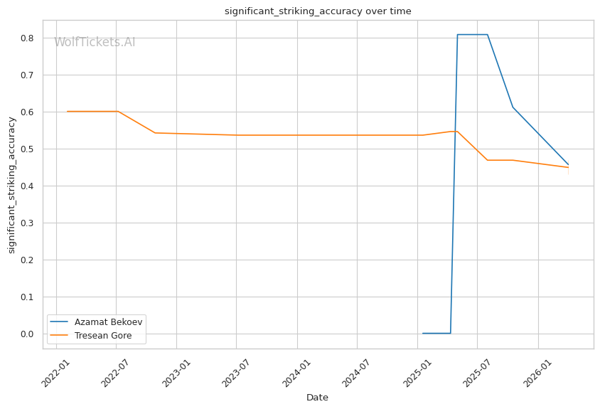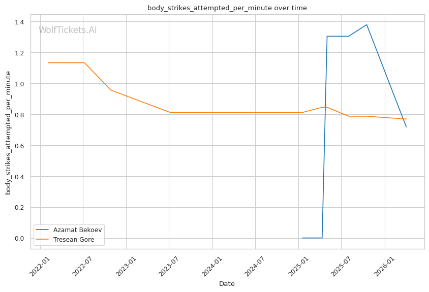 Championship Rounds (if applicable): This is a 3-round fight. If it goes deep, Bekoev's cardio issues could open the door for Gore. However, Gore's own striking output differential (-51.67) suggests he's not winning firefights, so he'd need to find a submission.