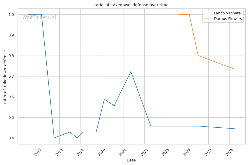 Vannata's wrestling has improved significantly. He stuffed 85% of Mike Grundy's takedowns and landed a massive slam in round three of that fight. While Flowers has shown reactive takedown timing, his execution is sloppy and his top control is nonexistent. If Vannata decides to wrestle, Flowers' 66.7% takedown defense rate against UFC-level competition suggests he'll struggle.