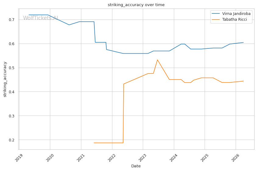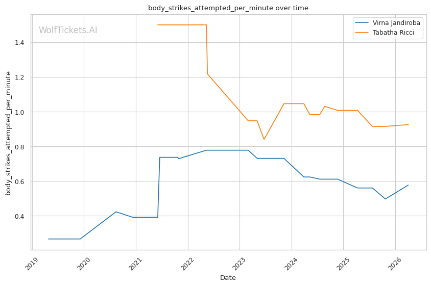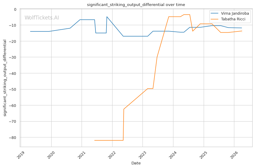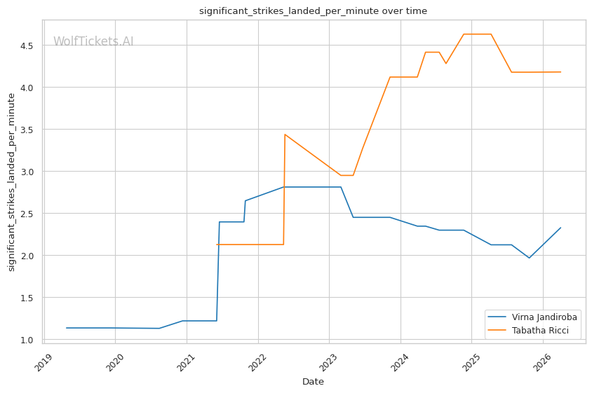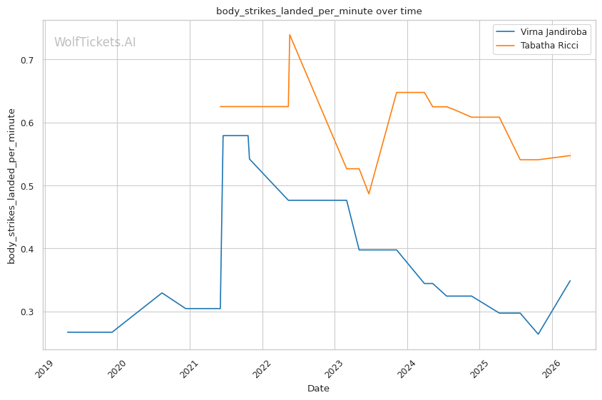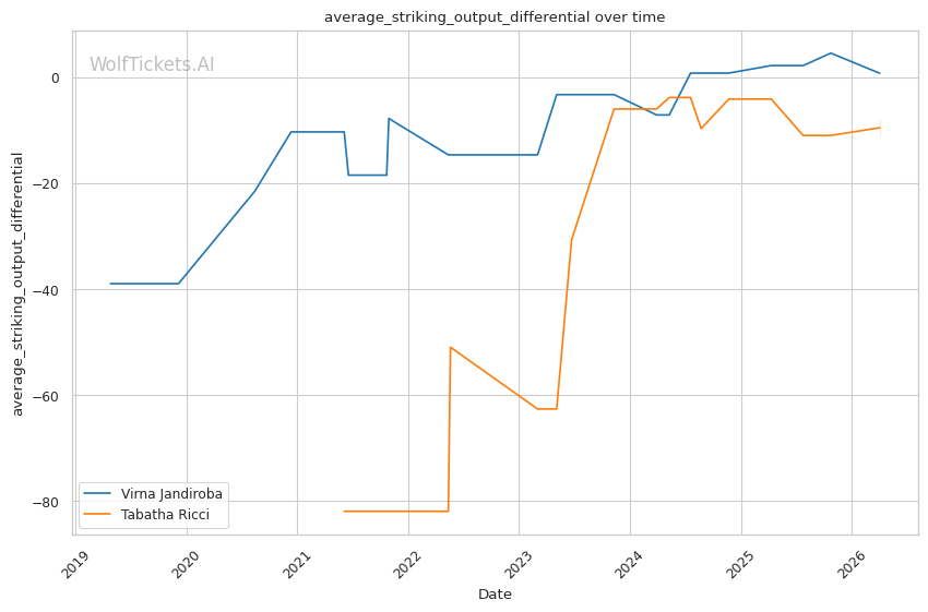 | Stat | Virna Jandiroba | Tabatha Ricci | Weight Class Average | |