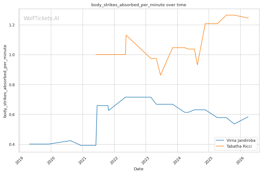 | Body Strikes Absorbed per Minute | 0.583 | 1.225 | 0.858 | |