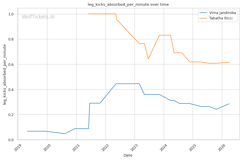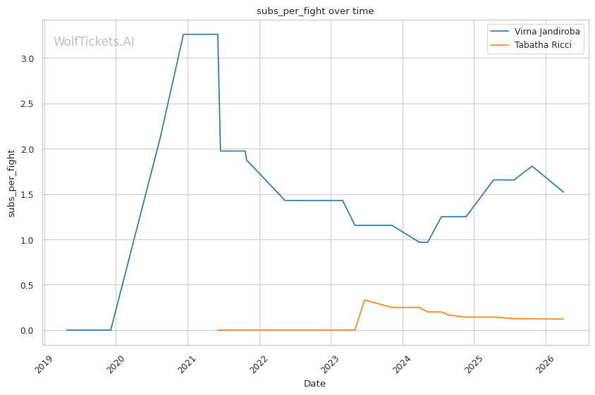 Grappling Hierarchy: Jandiroba's submission rate (1.52 per fight) dwarfs Ricci's (0.12 per fight). On the ground, this is a mismatch.