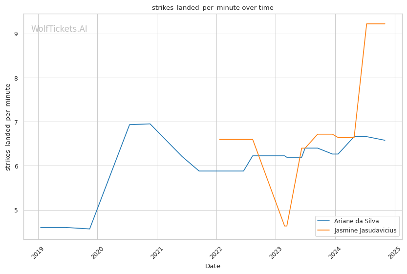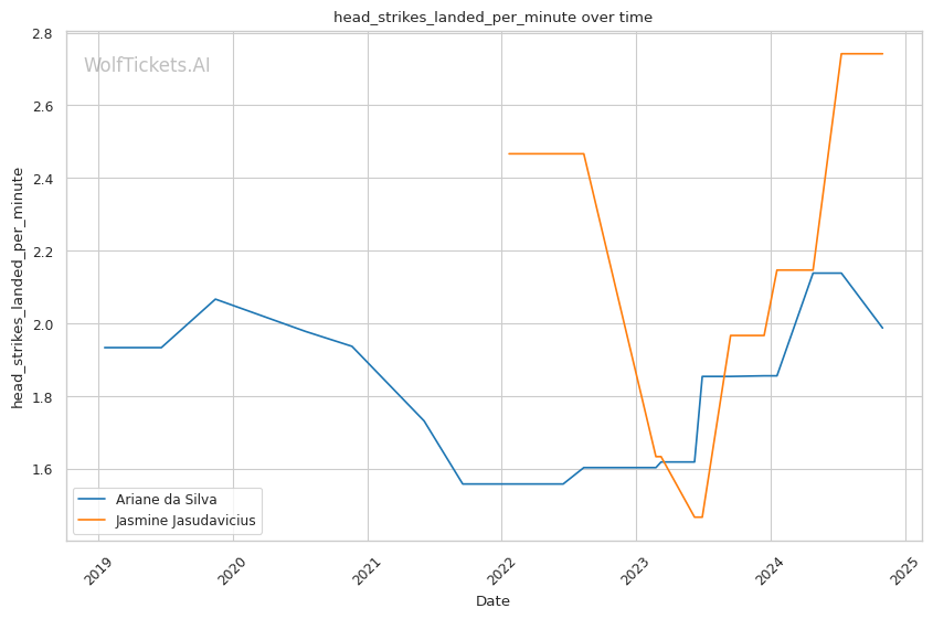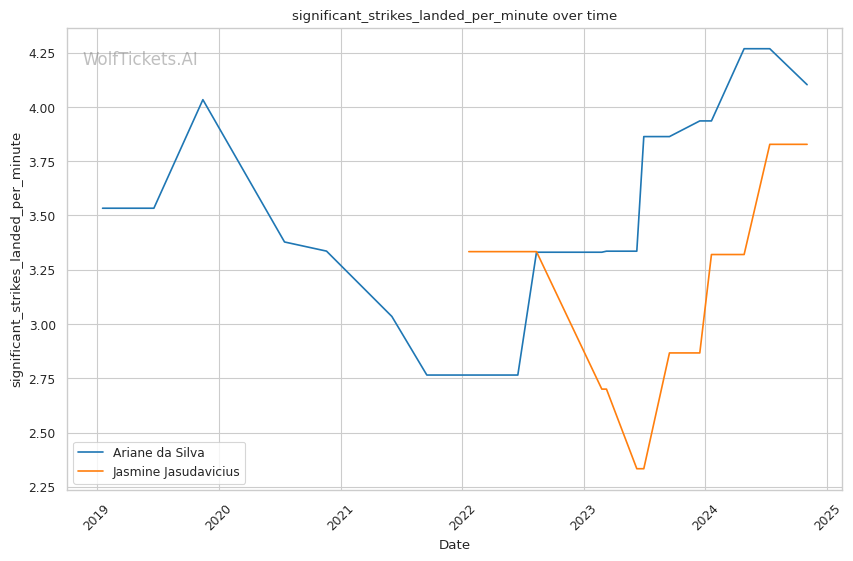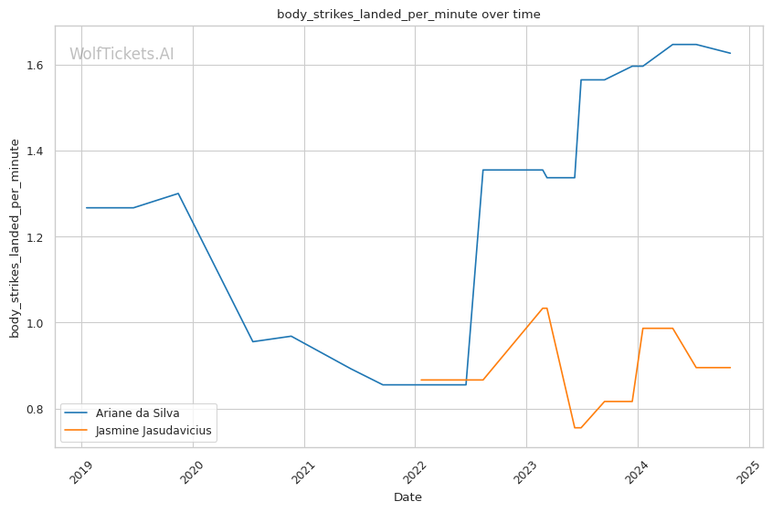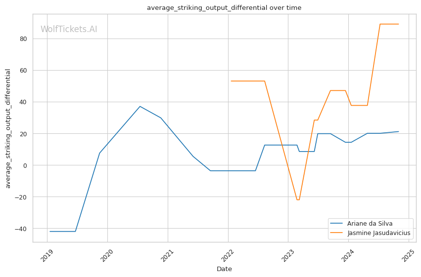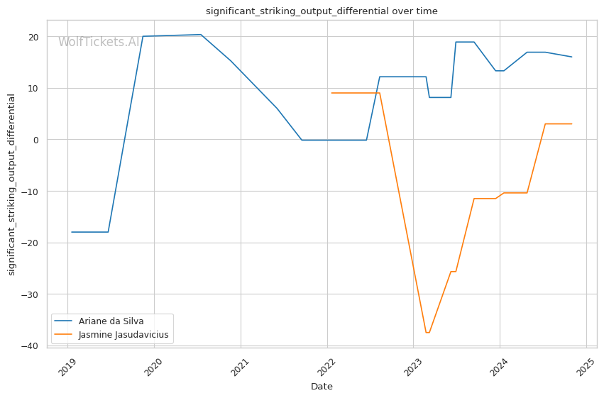 Striking and Grappling Stats: Jasudavicius's high pace and strike volume, coupled with her strong takedown and submission ability, align well with her style and give her clear paths to victory in the model's assessment.