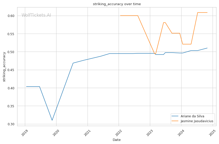 Grappling Advantage: Jasudavicius likely has the edge if this fight hits the mat given her aggressive pursuit of submissions and ground and pound. Da Silva will need to be cautious in grappling exchanges.