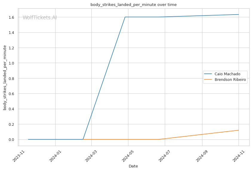 | Stat | Caio Machado | Brendson Ribeiro | Weight Class Average | |