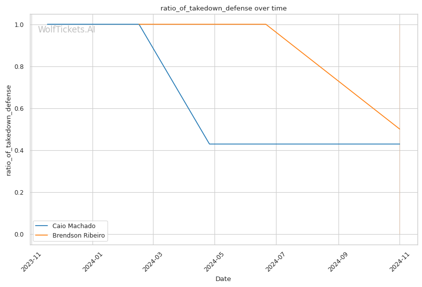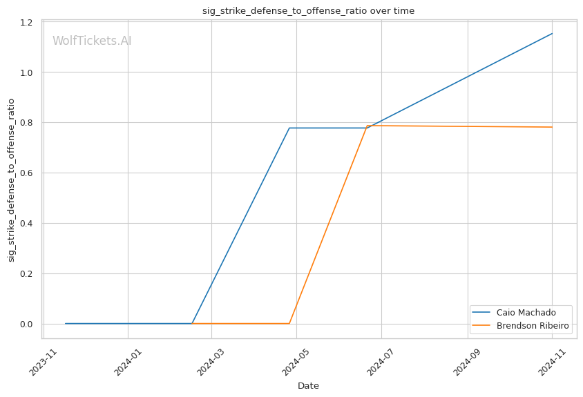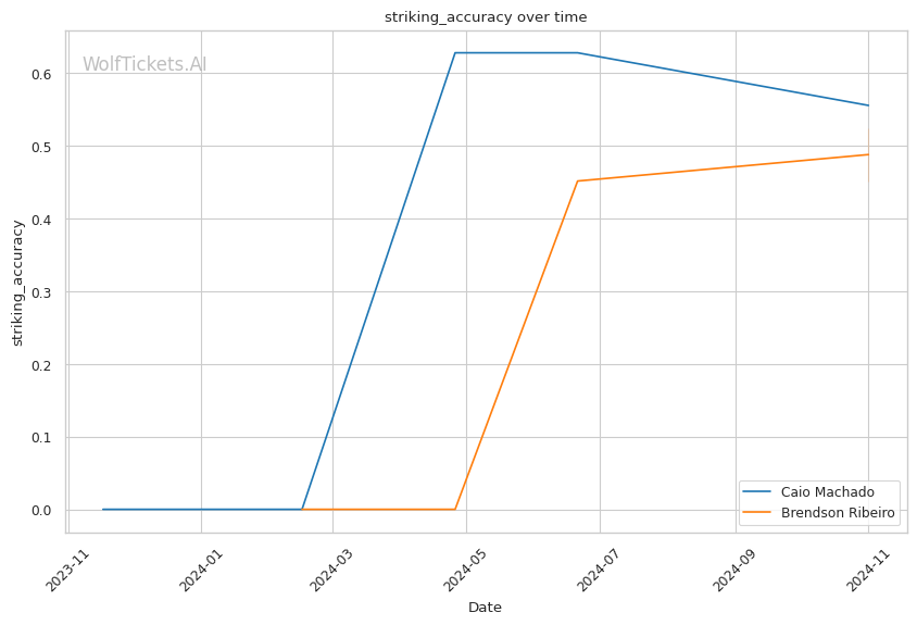 Despite coming off two consecutive decision losses, Caio Machado has shown promise in the striking department. With a striking defense to offense ratio of 1.0389 and a significant striking accuracy of 52%, Machado has demonstrated the ability to land cleanly while avoiding damage. His striking defense percentage of 57% is solid, allowing him to negate a good amount of his opponents' output.