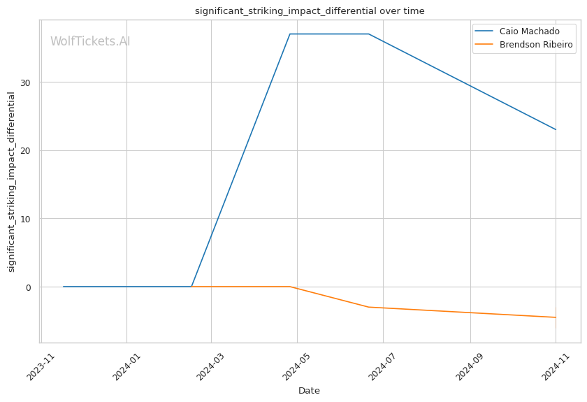 Significant Striking Impact Differential favors Machado. This was the biggest factor increasing the model's confidence in a Machado victory. His power and ability to deal damage while absorbing less in return is a key advantage.