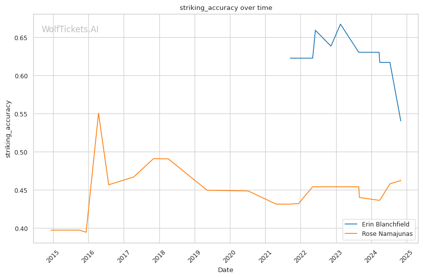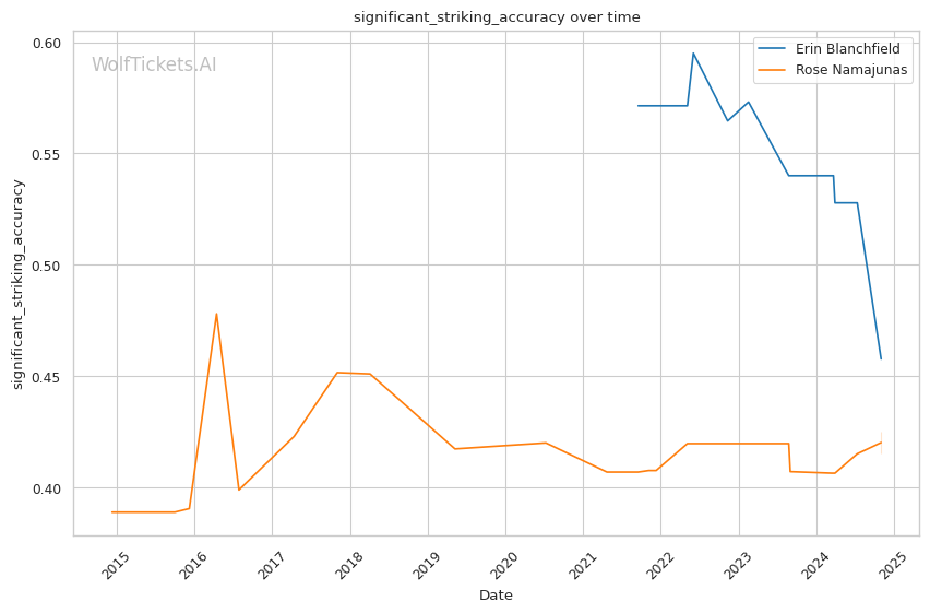 | Significant Striking Accuracy | 45.77% | 42.52% | 41.99% | |