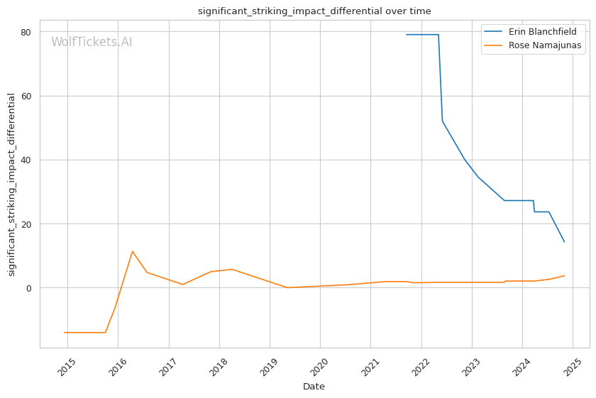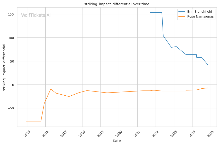 Striking Impact Differential: Blanchfield's higher striking impact differential indicates she lands more impactful strikes than she absorbs, a potential advantage if the fight stays standing.