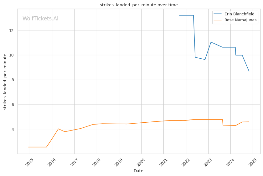 | Stat | Erin Blanchfield | Rose Namajunas | Weight Class Average | |