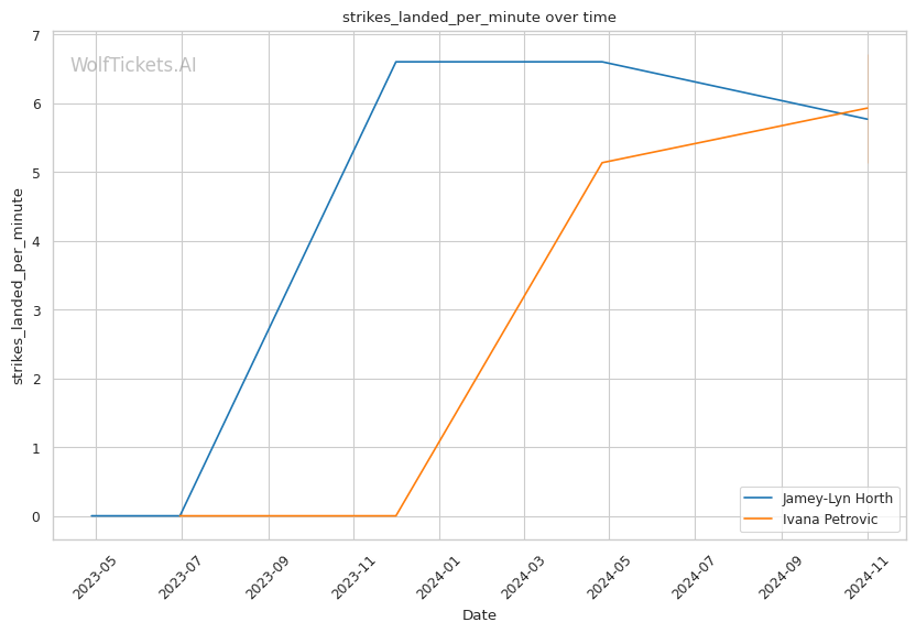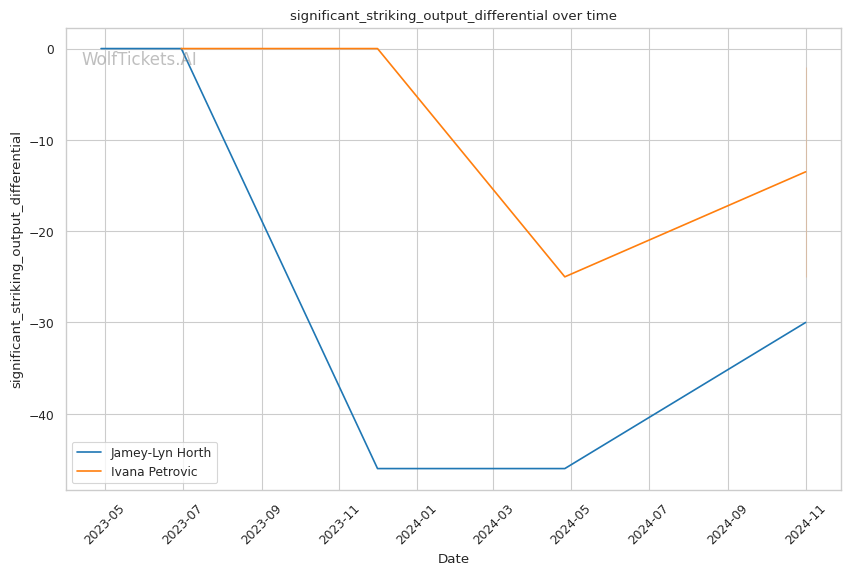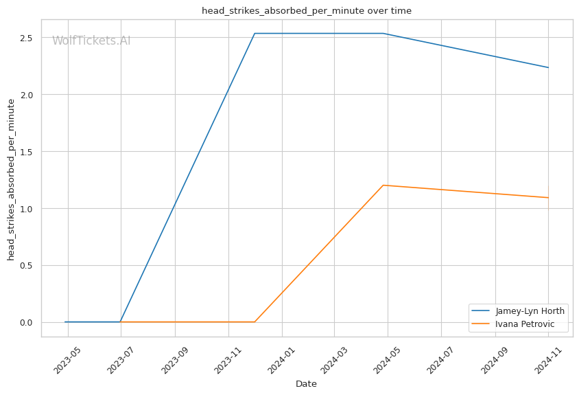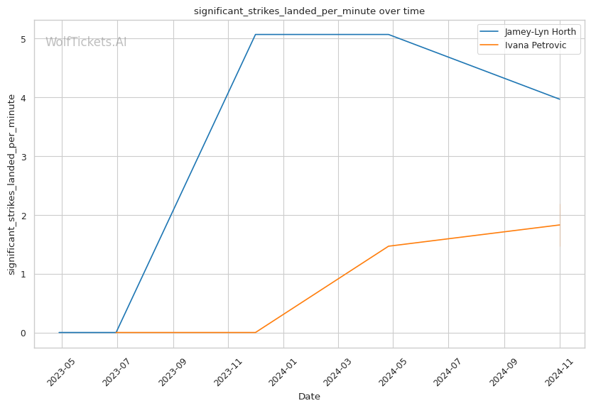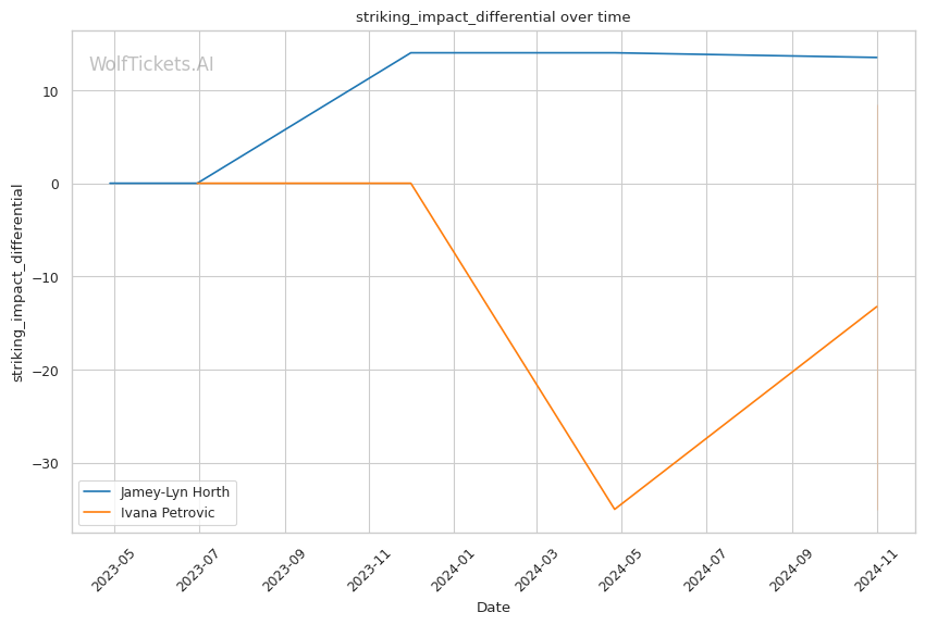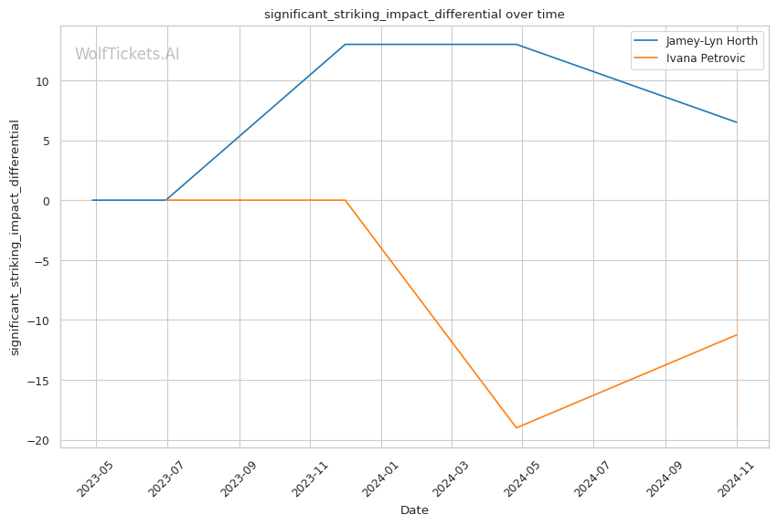 Significant Striking Impact Differential: Horth lands 6.5 more impactful significant strikes per minute than she absorbs, compared to Petrovic absorbing 3.5 more than she lands. This added 2 points.