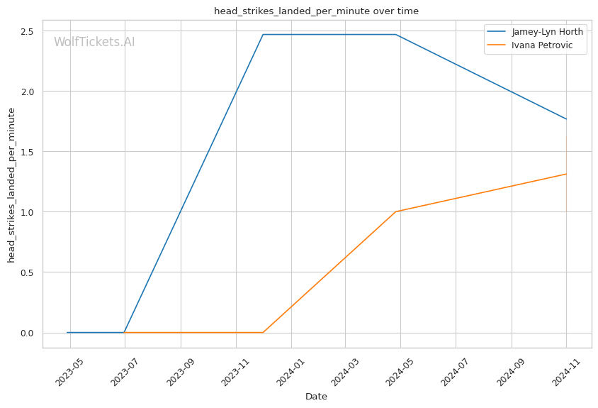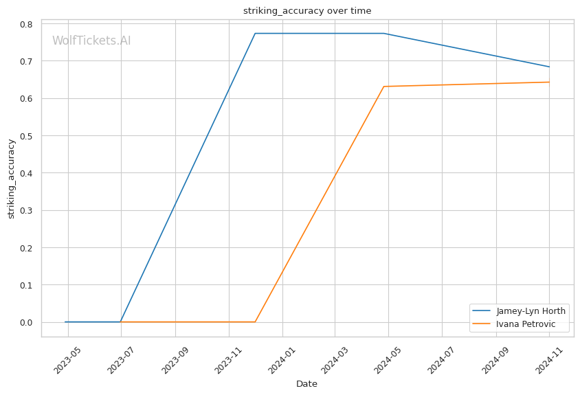 Striking: Horth is the more effective striker, landing at a higher rate with better accuracy and defense. Petrovic needs to utilize her reach to strike at distance.