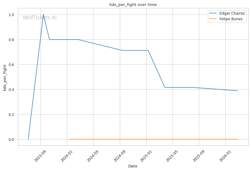 Chairez's improved boxing, reach advantage, and submission finishing ability make him the clear favorite here. Bunes has shown vulnerability to sustained striking pressure and was finished by Joshua Van. Chairez has the tools to replicate that result. Expect Chairez to establish his jab, work calf kicks, and look for the finish when Bunes shows damage. WolfTicketsAI has Chairez winning this one, and the data supports that pick.