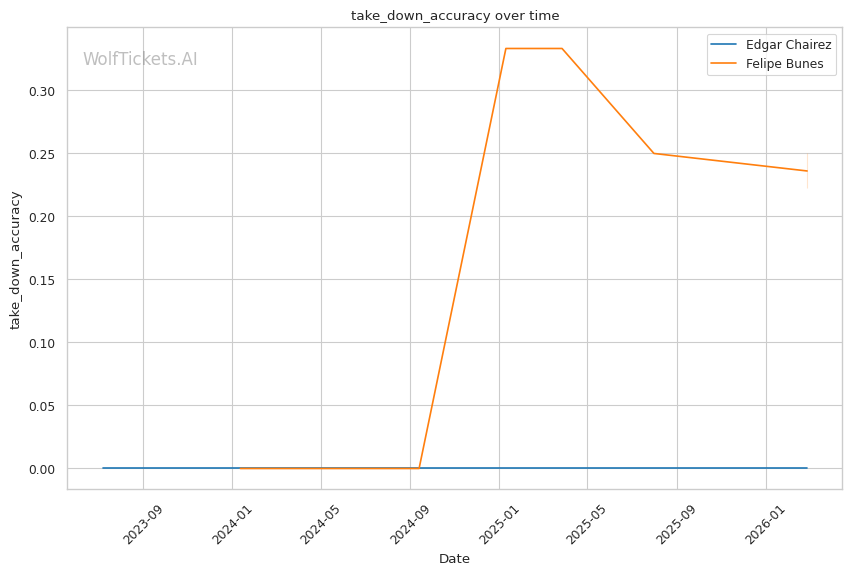 Striking Defense and Volume Absorption: Chairez absorbs 5.21 significant strikes per minute with only 42% striking defense. Against Joshua Van, this became a problem in rounds two and three. Van's body shots forced Chairez to tuck his elbow tight, which compromised his overall striking posture. High-volume strikers who can weather his early offense tend to find success.