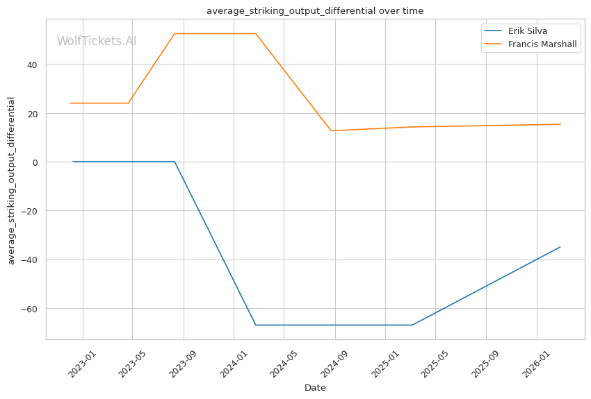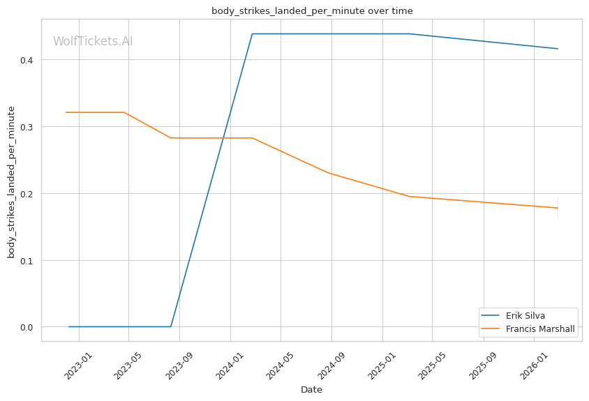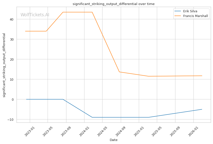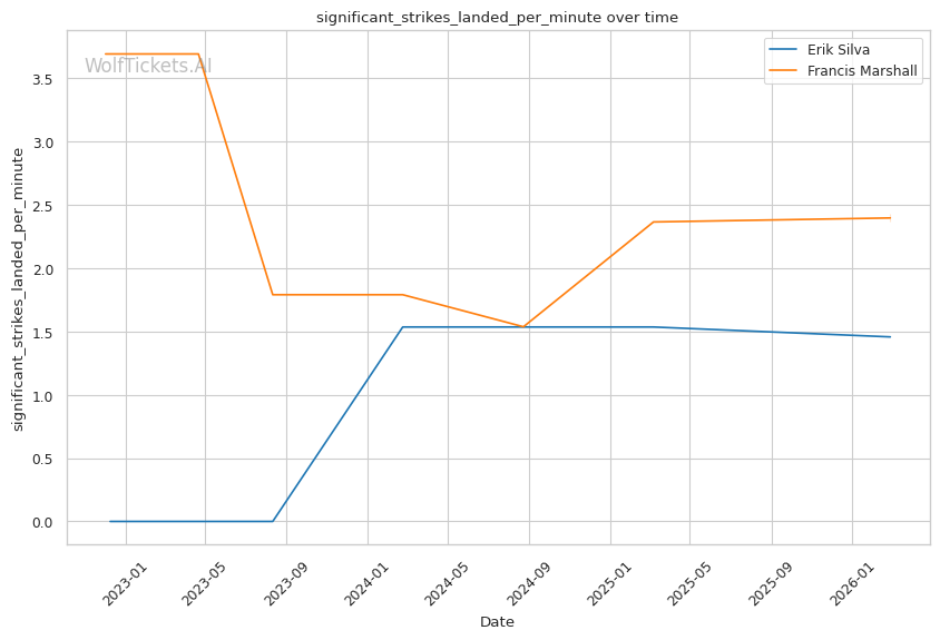 Late Rounds: Silva's recent striking output has declined, and his 0% recent win percentage suggests conditioning or confidence issues. Marshall, despite his recent loss, has shown he can go the distance and maintain technical execution.