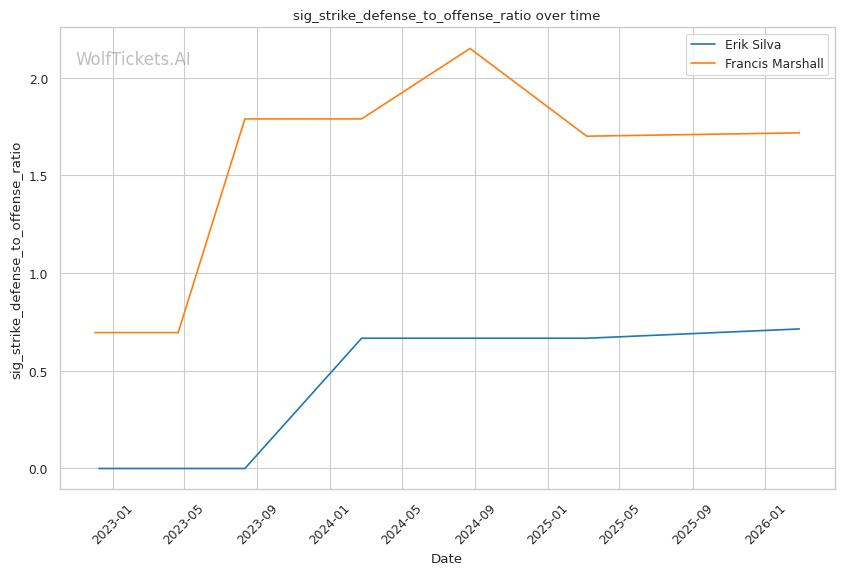 | Significant Striking Defense to Offense Ratio | 71.43% | 173.53% | 106.39% | |