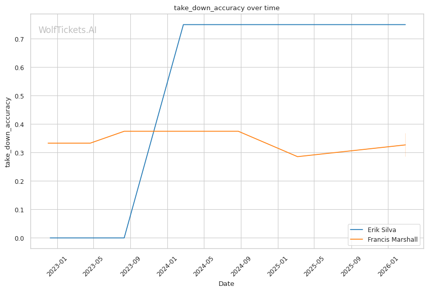 The Dulgarian loss showed Marshall can be taken down and finished, but Dulgarian's wrestling is likely more refined than Silva's. Silva's recent 46% takedown accuracy against UFC competition suggests he may struggle to consistently get Marshall down.