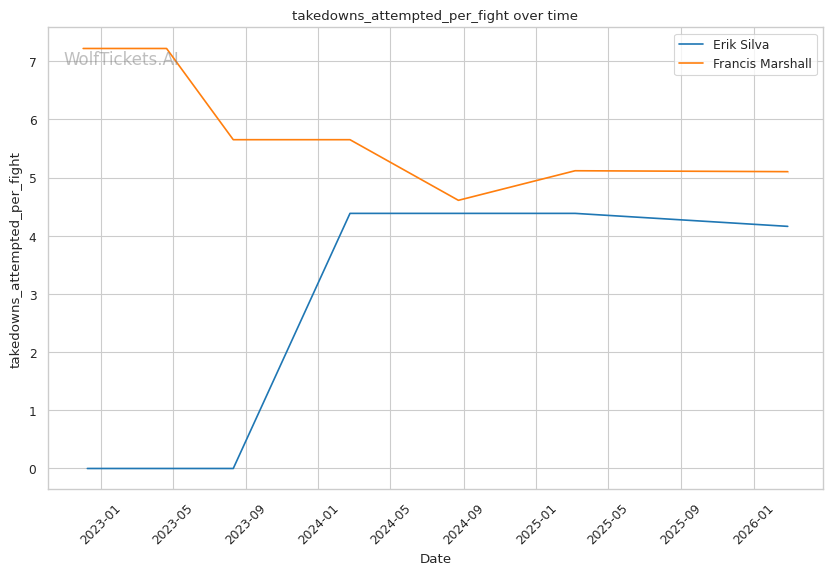 Technical Evolution: Silva's recent stats show a decline in takedown accuracy from 75% overall to just 46% in recent fights. His striking output has also dropped, suggesting he may be struggling to set up his wrestling entries against UFC-level competition.