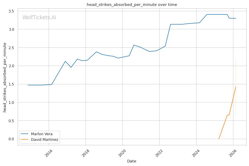 Striking Defense Deterioration: Career striking defense sits at just 50% with an absorption rate of 5.37 strikes per minute. Against patient counter-strikers like Aldo and Zahabi, this allows opponents to land volume without facing meaningful interruption. His recent significant striking defense percentage has dropped to 46%.