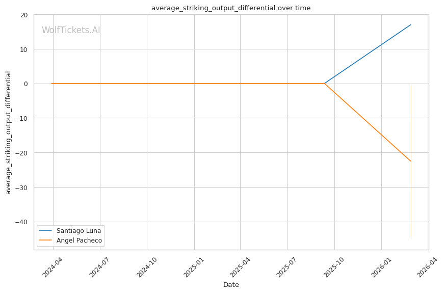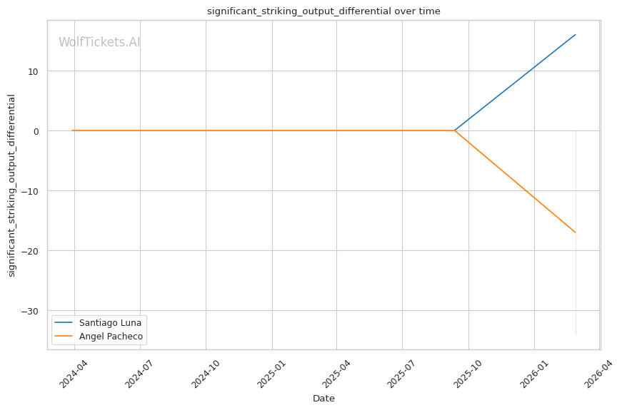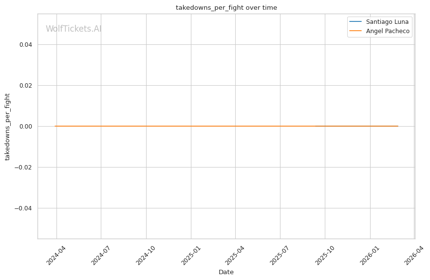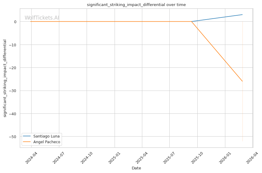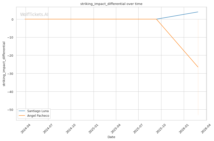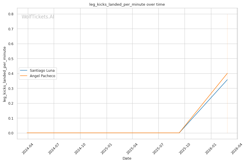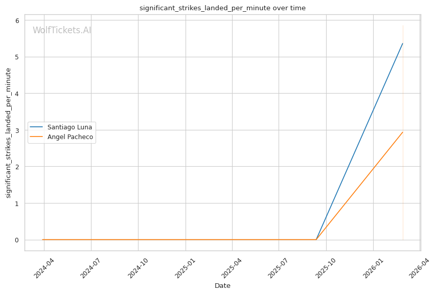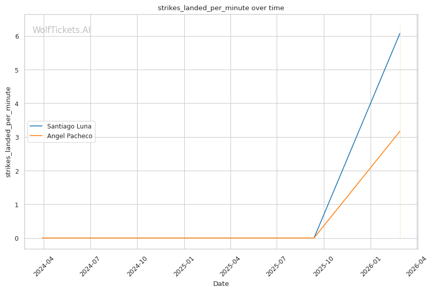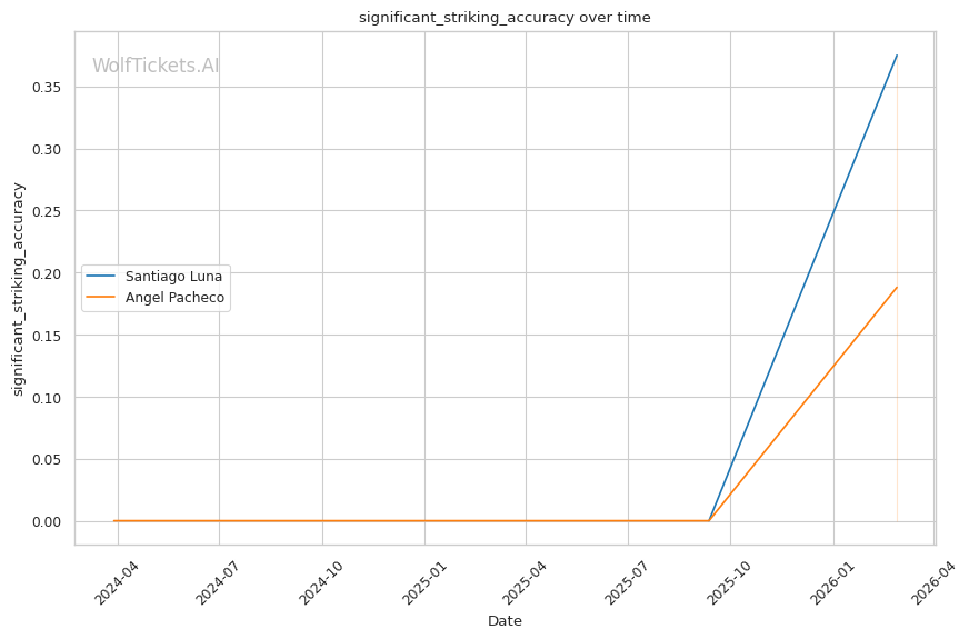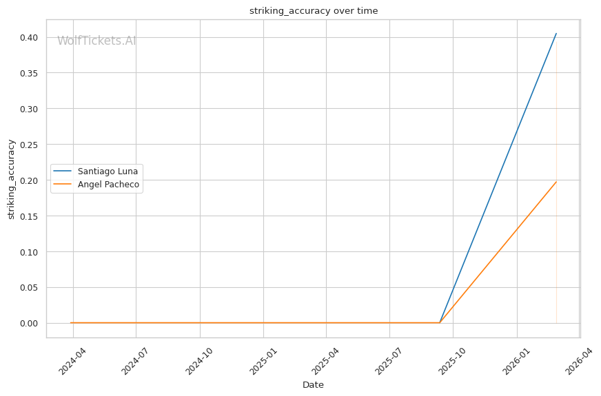 WolfTicketsAI has no prediction history for either fighter. Luna has one UFC fight and Pacheco has one UFC fight, neither of which the model has previously predicted. This limited data introduces some uncertainty, but the statistical gaps between these fighters are significant enough that the prediction carries reasonable confidence.