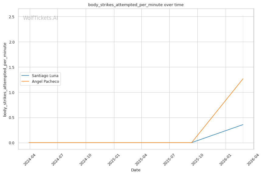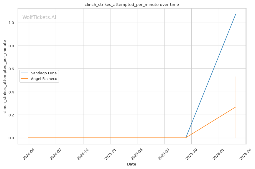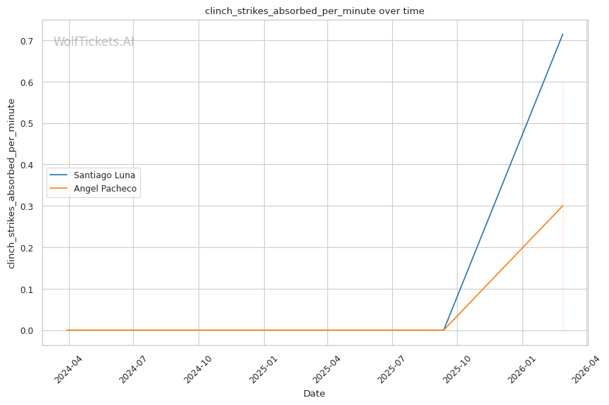 Clinch Dynamics: If Pacheco survives the early exchanges and closes distance, the clinch becomes interesting. Luna shows comfort there (1.07 clinch strikes landed per minute), but Pacheco's durability means he might be able to weather the storm in close. However, Luna's takedown attempts (5.36 per fight) could allow him to drag Pacheco down if the clinch stalls.