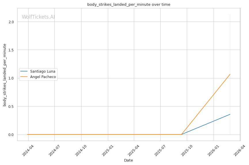 | Stat | Santiago Luna | Angel Pacheco | Weight Class Average | |