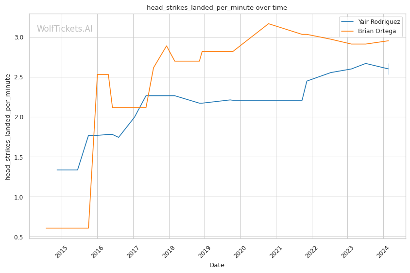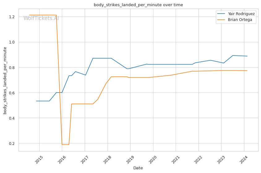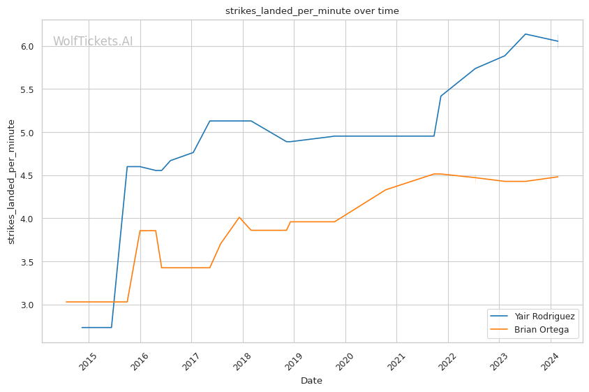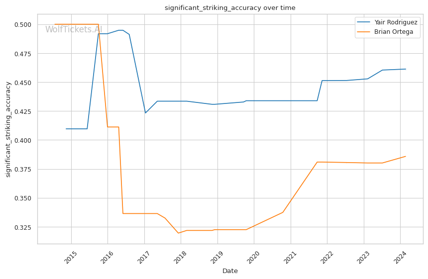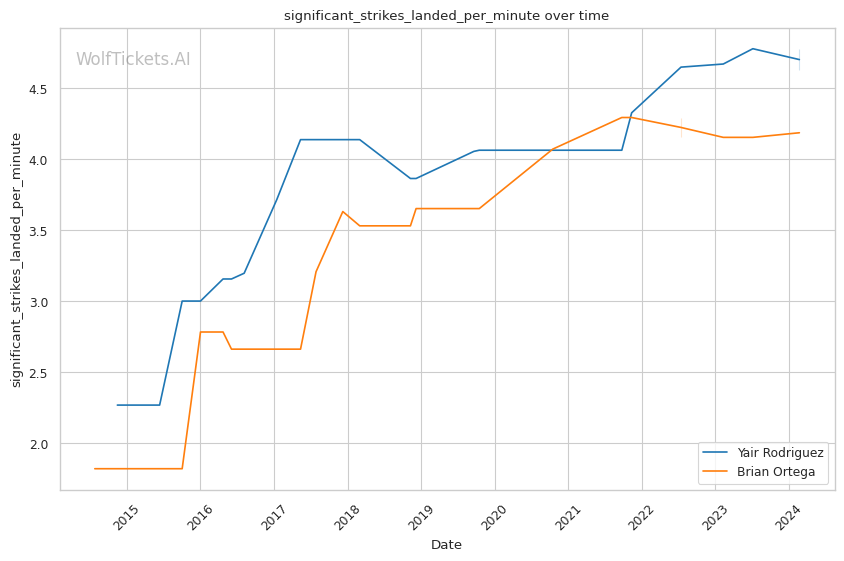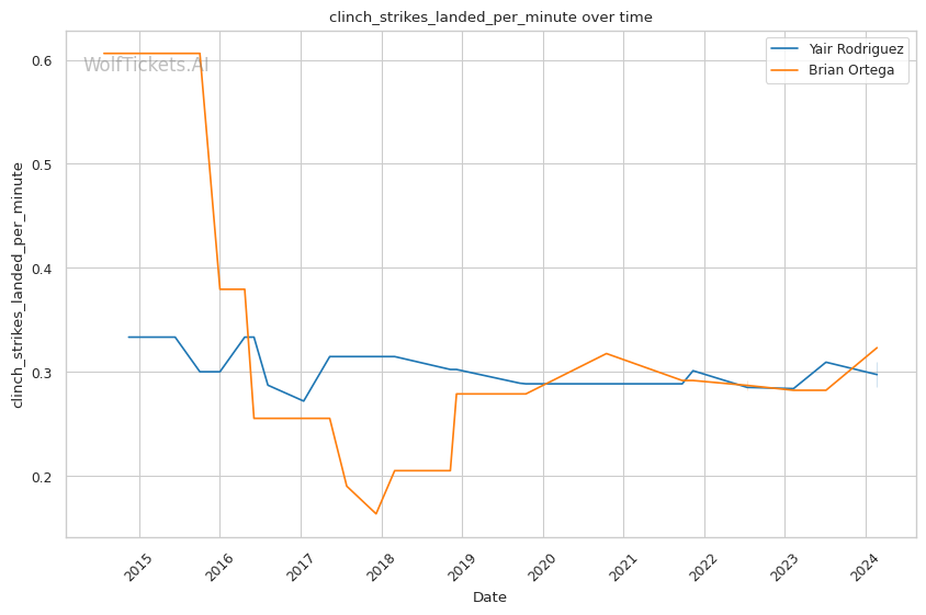 | Stat | Yair Rodriguez | Brian Ortega | Weight Class Average | |
