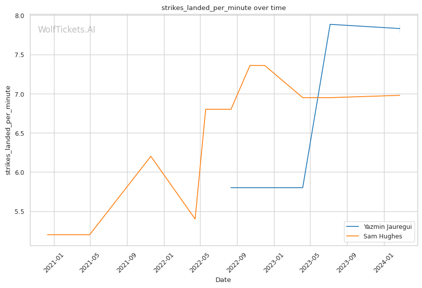 | Stat | Yazmin Jauregui | Sam Hughes | Weight Class Average | |