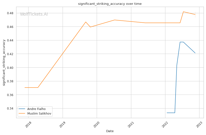 | Significant Striking Accuracy | 42.11% | 47.36% | 46.66% | |