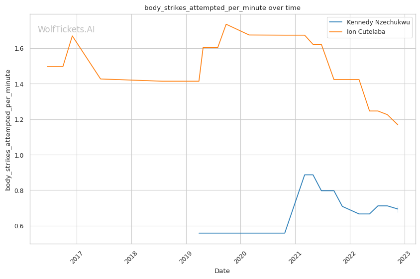 | Body Strikes Attempted per Minute | 0.676 | 1.168 | 1.158 | |