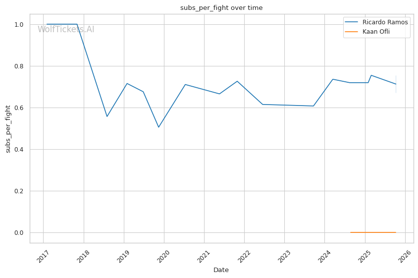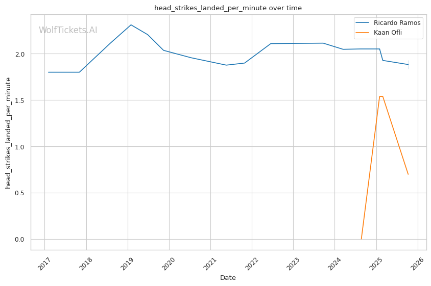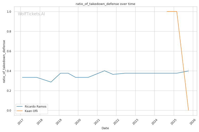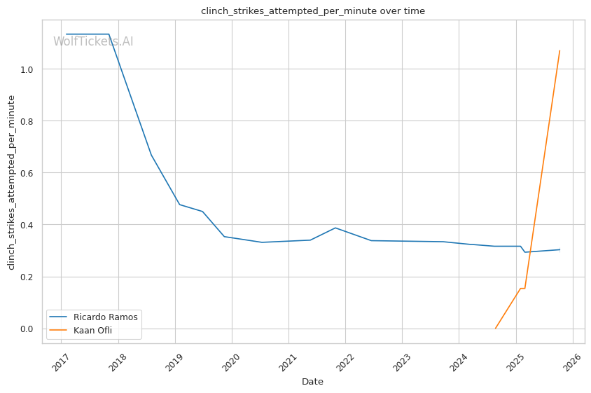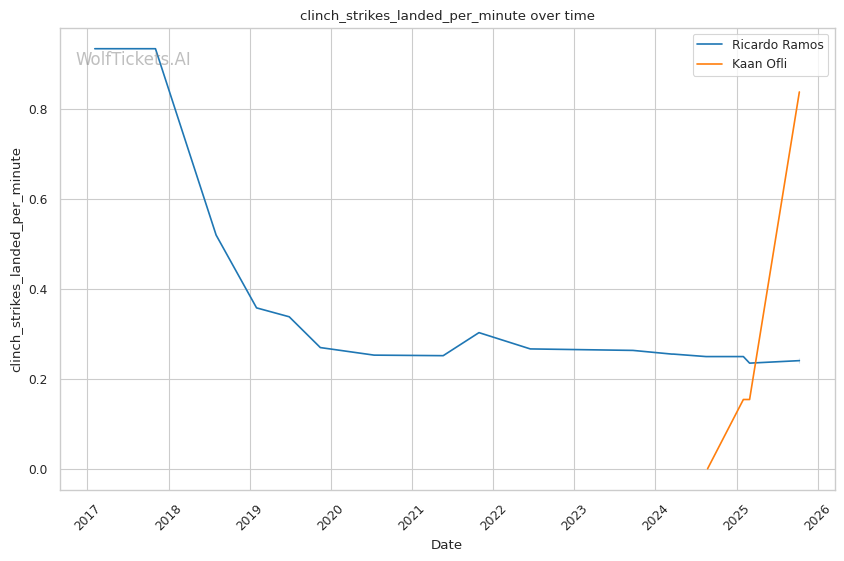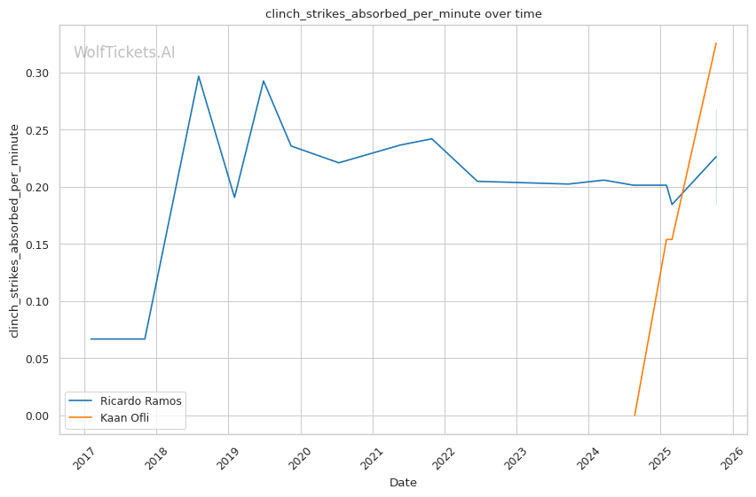 Output Disparity: Ramos lands 2.97 significant strikes per minute; Ofli lands 1.18. Even on the feet, Ramos wins the volume battle.