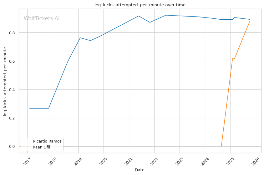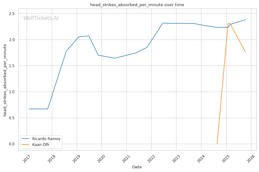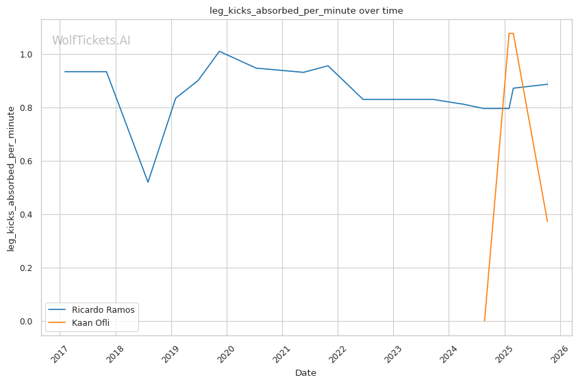 Ofli's output is abysmal. He landed 31 significant strikes total against Naimov and averages 1.85 significant strikes per minute. Compare that to Ramos's 2.97 per minute, and you see the activity gap. Ofli darts in and out with kicks but can't sustain pressure or volume.