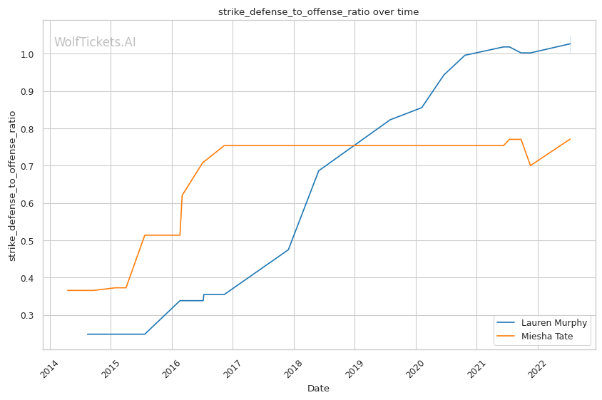 | Significant Striking Defense to Offense Ratio | 177.56% | 122.34% | 136.11% | |