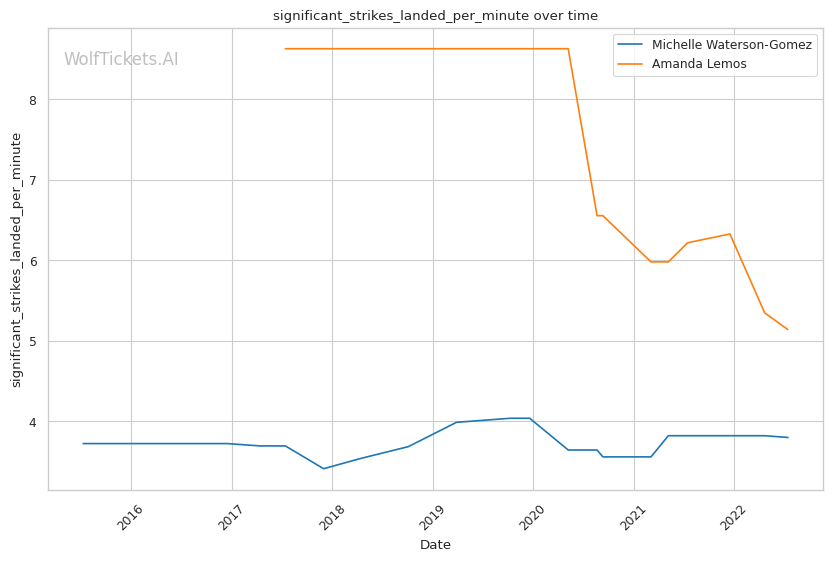 | Stat | Michelle Waterson-Gomez | Amanda Lemos | Weight Class Average | |