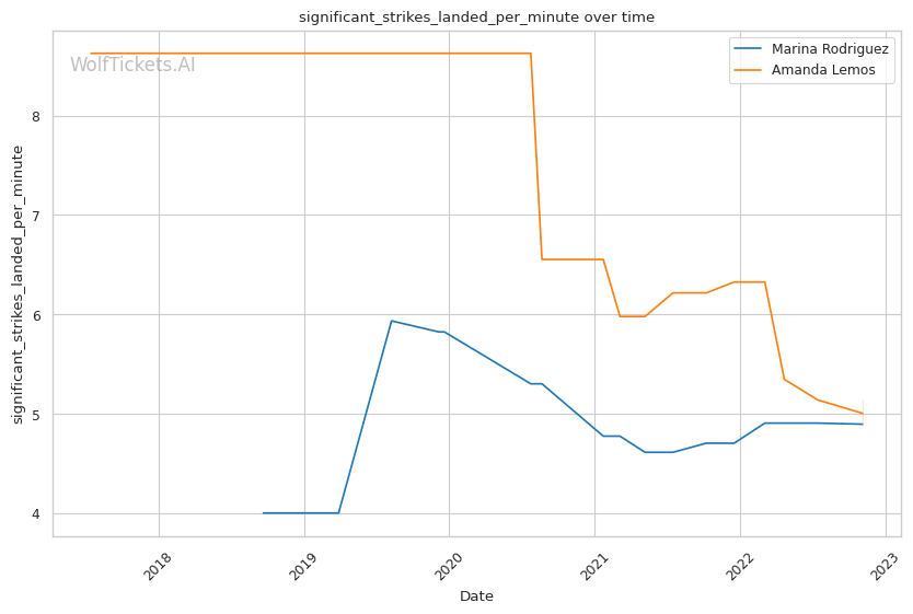 | Stat | Marina Rodriguez | Amanda Lemos | Weight Class Average | |